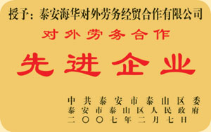 弊社は2005年にISO9001:2000国際品質システム認証を取得し、2005年から2007年まで三年連続泰安市委員会市政府と泰山区委員会区政府に「対外経済先進企業」賞を授与されました。2007年に中国中日研修生協力機構の成員になることを認可され、山東省就業促進会に「山東省海外就職仲介機構信用できるAAA企業」と評価されました。